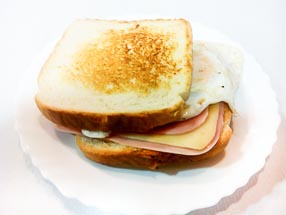 Sandwich Mixto con Huevo: Jamón york, queso y huevo 3´80 € |